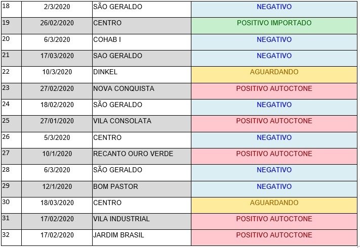Neste ano até o dia de hoje, 27/3, doze casos positivos da doença estão confirmados, sendo: três no jardim Brasil, três na vila Consolata, dois na vila Industrial, um no Recanto Ouro Verde, Nova Conquista e Centro; todos autóctone e um caso importado no Centro da cidade. Em quinze casos, os exames deram negativos. Existem cinco casos aguardando os resultados dos exames. Todos os casos positivos, os pacientes se recuperam, sem apresentarem maiores problemas.