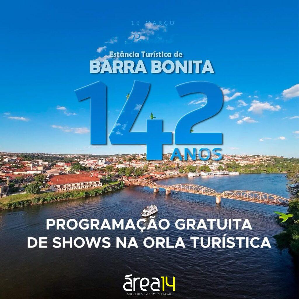 A Estância Turística de Barra Bonita celebra seus 142 anos com muita música e energia em shows ao vivo na Avenida Rosa Zanela Petri, Orla Turística. A programação é uma organização da Prefeitura de Barra Bonita, que promete envolver nas festividades.