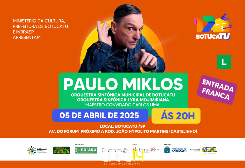 No sábado, 5 de abril, as comemorações dos 170 anos de Botucatu começam com um show especial de Paulo Miklos acompanhado pela Orquestra Sinfônica Municipal de Botucatu, Orquestra Sinfônica Lyra Mojimiriana e Maestro Carlos Lima. Esta apresentação único promete misturar pop rock nacional com o toque elegante da música clássica.