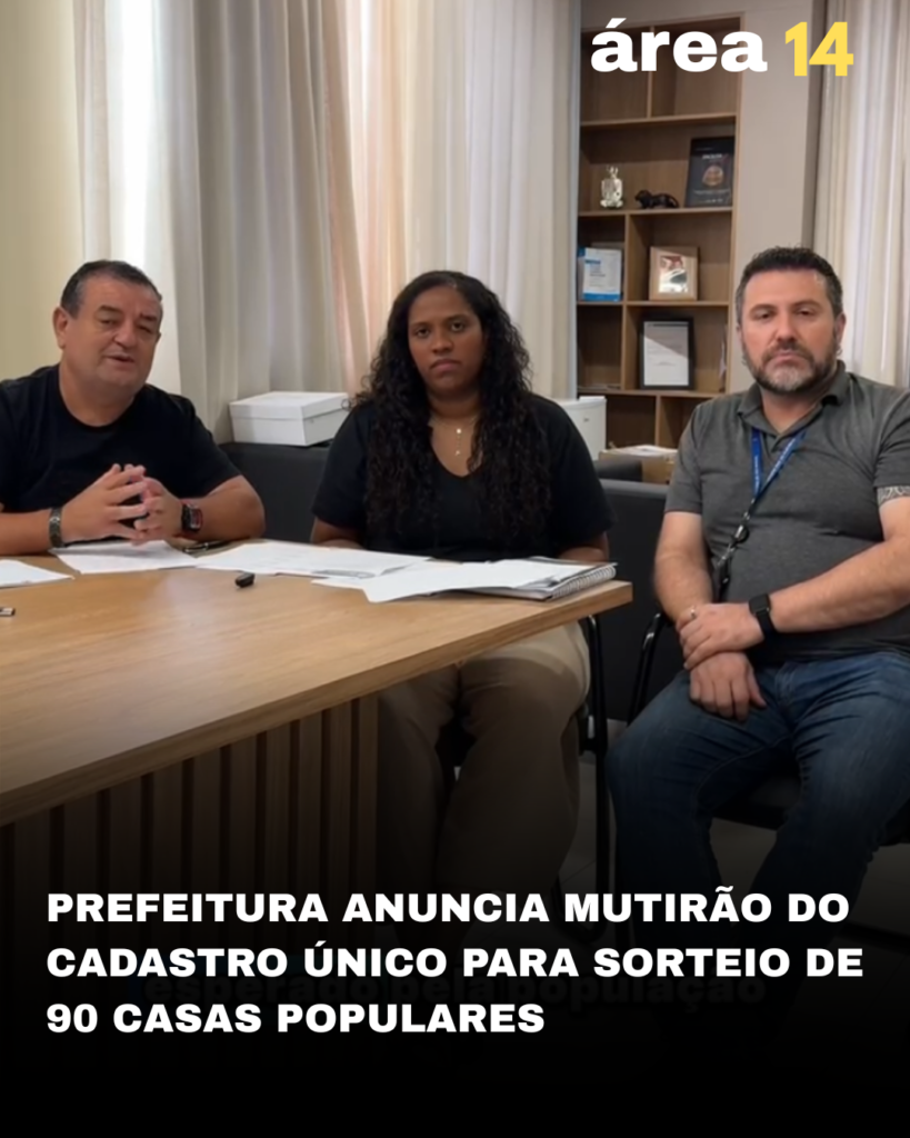 A Prefeitura iniciará um mutirão nos bairros para atualização e criação do Cadastro Único, requisito obrigatório para participar do sorteio de 90 casas populares. Os atendimentos começam no dia 2 de março. Já as inscrições oficiais para o sorteio das moradias terão início no dia 6 de abril.