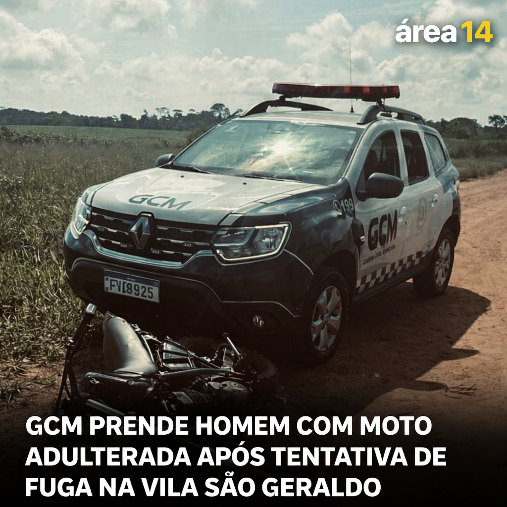 Durante um patrulhamento de rotina na Vila São Geraldo, a equipe da Guarda Civil Municipal (GCM) tentou abordar um homem que estava em uma motocicleta sem placa e sem os espelhos retrovisores. Ao perceber a aproximação dos guardas, o condutor tentou escapar entrando em uma área de mata, mas acabou caindo do veículo e foi detido imediatamente.