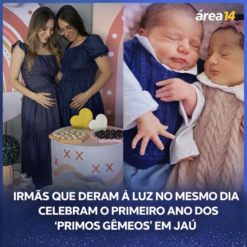Uma coincidência rara uniu ainda mais duas irmãs. Natália e Rafaela deram à luz no mesmo dia, dividiram o quarto na Santa Casa de Jaú e agora celebram o primeiro aniversário de Liz e Davi. A festa conjunta marcou a forte conexão entre os bebês, carinhosamente chamados de primos gêmeos.