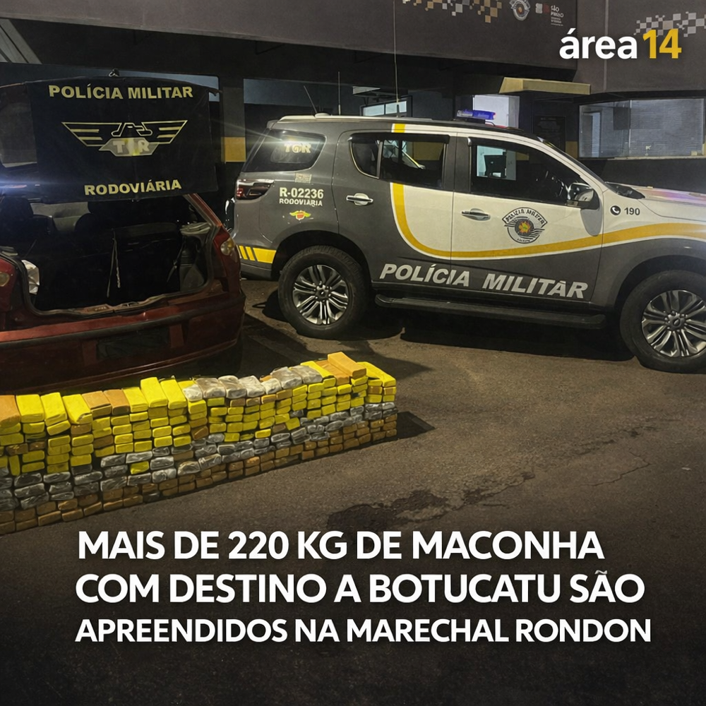 Policiais militares interceptaram uma carga de mais de 220 kg de maconha na Rodovia Marechal Rondon que tinha como destino Botucatu. Um homem foi preso em flagrante e a droga encaminhada à Delegacia de Polícia.