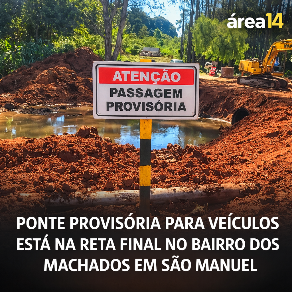 A Prefeitura de São Manuel está avançando rapidamente para devolver o acesso completo ao Bairro dos Machados. Após as fortes chuvas que destruíram a ponte original da região, as equipes da Secretaria de Zeladoria, Serviços e Mobilidade Urbana trabalharam intensamente desde os primeiros dias para construir uma estrutura provisória destinada à passagem de veículos, que já está praticamente concluída.