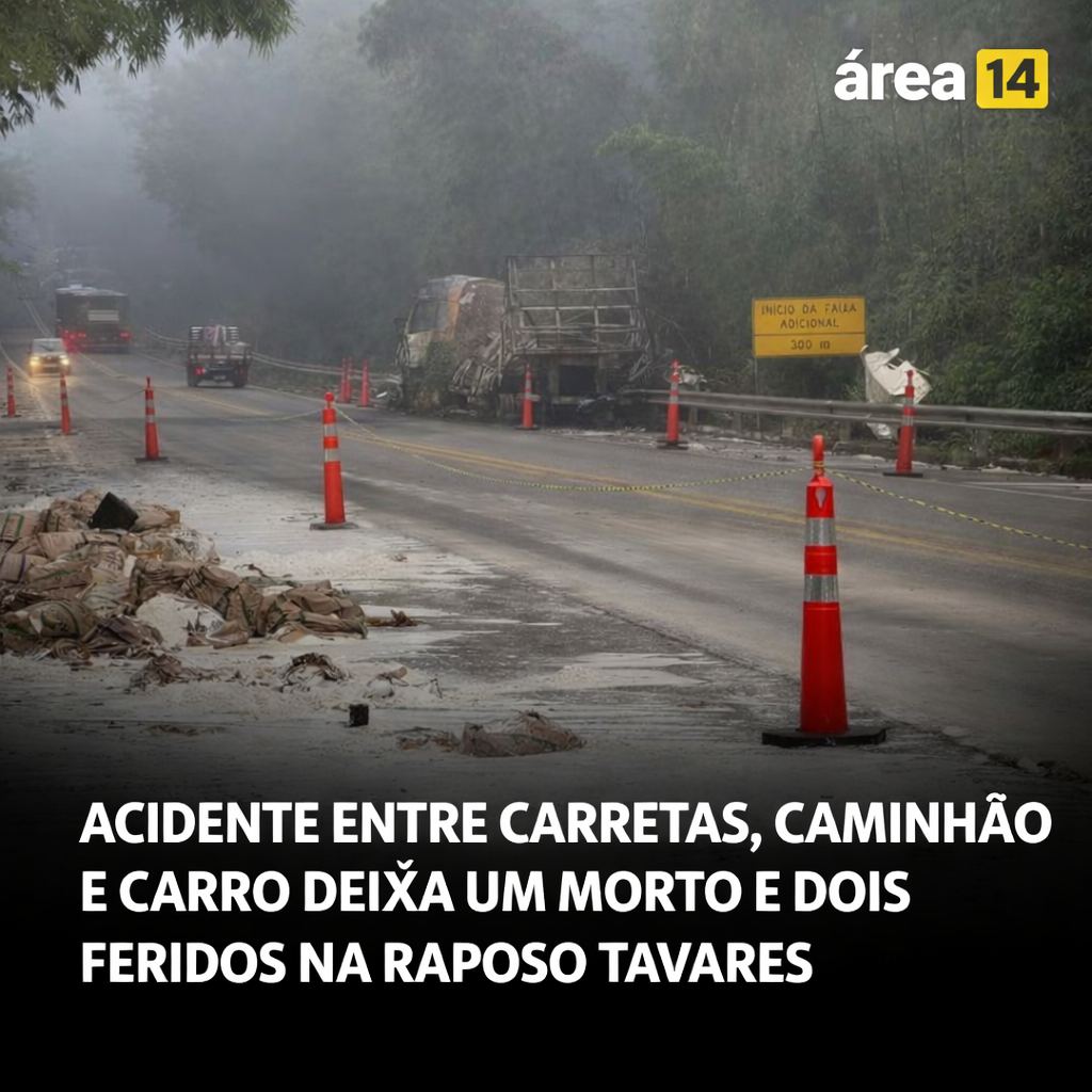Na noite desta quarta-feira (1º), por volta das 20h40, um grave acidente envolvendo duas carretas, um caminhão e um carro resultou na morte de uma pessoa e deixou outras duas feridas no quilômetro 235 da Rodovia Raposo Tavares (SP-270), em Paranapanema.