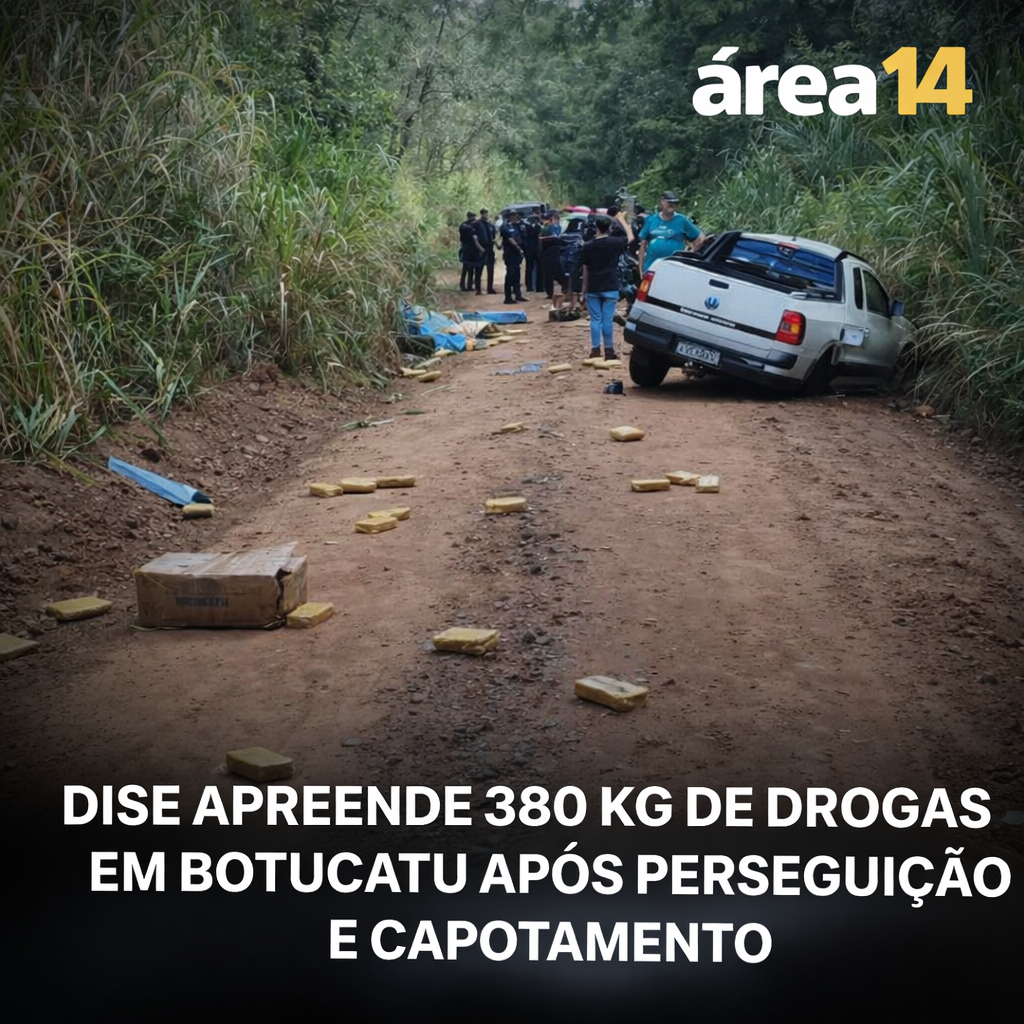 A Polícia Civil realizou a maior apreensão de pasta base de cocaína da história urbana de Botucatu nesta terça-feira (28). Após uma perseguição intensa por diversos bairros, uma picape carregada com 380 quilos de entorpecentes capotou. O motorista foi preso em flagrante e a droga seria distribuída na cidade e região.