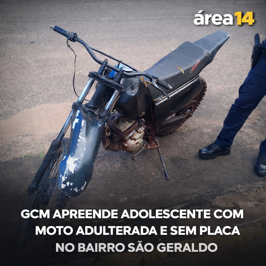 Um adolescente foi apreendido pela Guarda Civil Municipal (GCM) enquanto pilotava uma moto sem placa, sem retrovisores e com o chassi adulterado no bairro São Geraldo. A mãe do menor acompanhou a ocorrência, e o veículo irregular foi apreendido pela polícia.