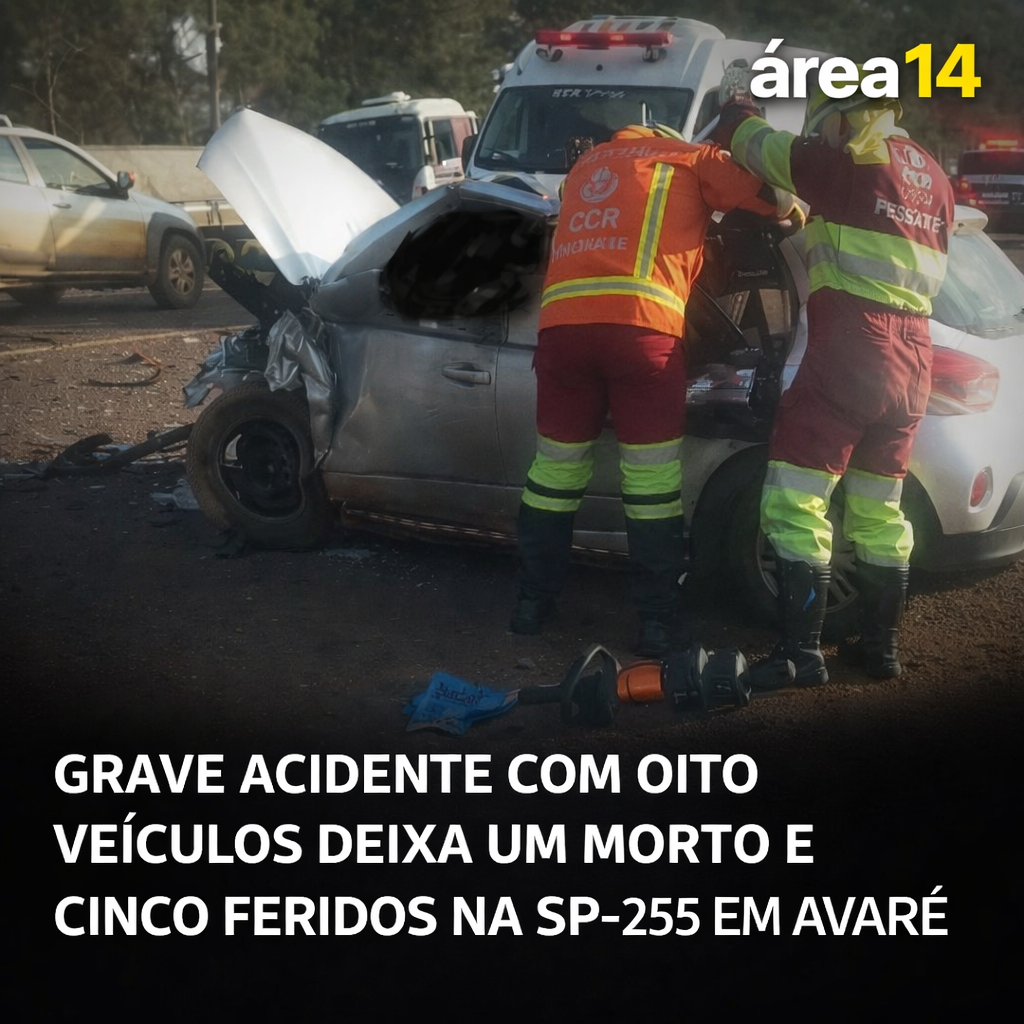 Uma colisão em cadeia envolvendo oito veículos causou a morte de uma pessoa e deixou outras cinco feridas na manhã desta quinta-feira (16), na Rodovia João Mellão (SP-255), em Avaré. O acidente mobilizou equipes de resgate e parte das vítimas precisou ser retirada das ferragens.