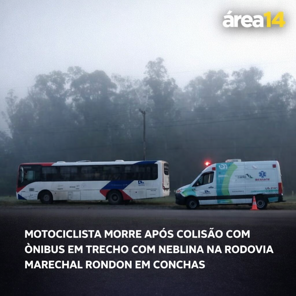 Um motociclista morreu na manhã desta quinta-feira (16) após colidir com um ônibus na Rodovia Marechal Rondon (SP-300), no município de Conchas. Segundo a CCI Artesp, a visibilidade estava reduzida por neblina no momento do acidente. O condutor do ônibus não ficou ferido. O caso foi registrado para investigação policial.