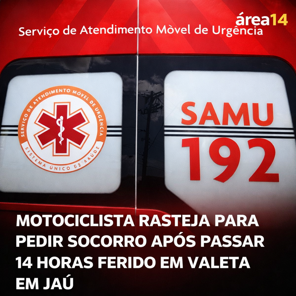 Um motociclista de 44 anos foi resgatado na manhã deste domingo (26) em Jaú após um acidente ocorrido na tarde de sábado. A vítima, que teria sido atingida por outro veículo que fugiu sem prestar auxílio, precisou rastejar para fora de uma valeta de escoamento para ser vista por populares após passar a noite imobilizada.