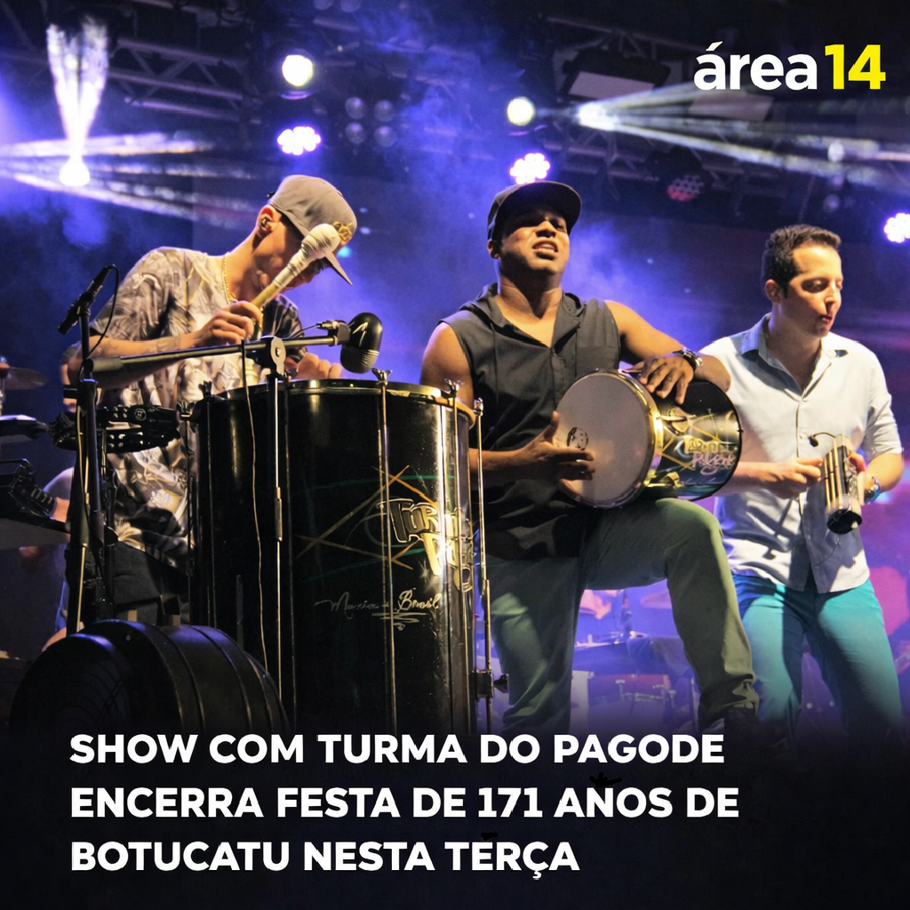 O grupo Turma do Pagode se apresenta nesta terça-feira (14) na Avenida do Fórum, encerrando as comemorações do aniversário de Botucatu. A festa começa às 18h com DJ e show do grupo Acaso 102. Haverá parque de diversões gratuito e linhas especiais de ônibus.