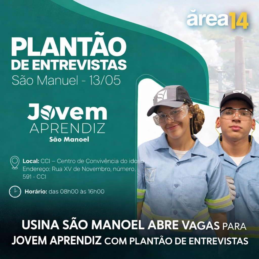USINA SÃO MANOEL ABRE VAGAS PARA JOVEM APRENDIZ COM PLANTÃO DE ENTREVISTAS